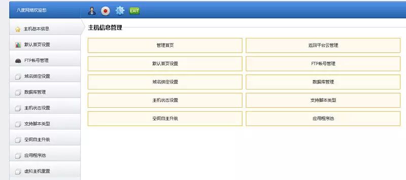 平台云(八度一键式云平台综合管理系统)2014年中旬正式上线,协助不懂技术的站长自主进行默认首页、域名绑定、数据库开通等的一键式操作。系统可以实现空间的自主化升级,所有的空间升级均可以实现后台的自动管理,空间管理方便省时。